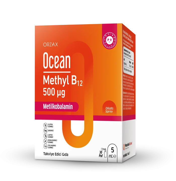 Bedensel ritminizi Ocean Methyl B12 ile dengeleyin! 500 mcg aktif metilkobalamin içeren, dil altı emilimli ve yorgunluğu azaltmaya yardımcı fonksiyonel B12 desteği.