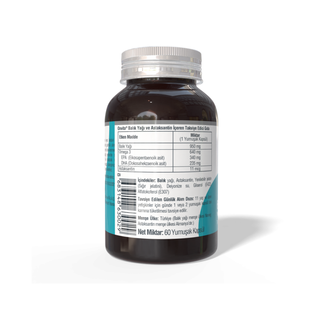 - Onvita Omega 3 Balık Yağı-Astaksantin, Tirgliserid Form 30 Yumuşak Kapsül