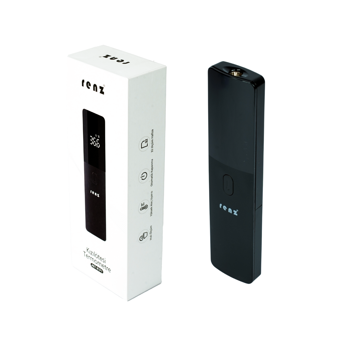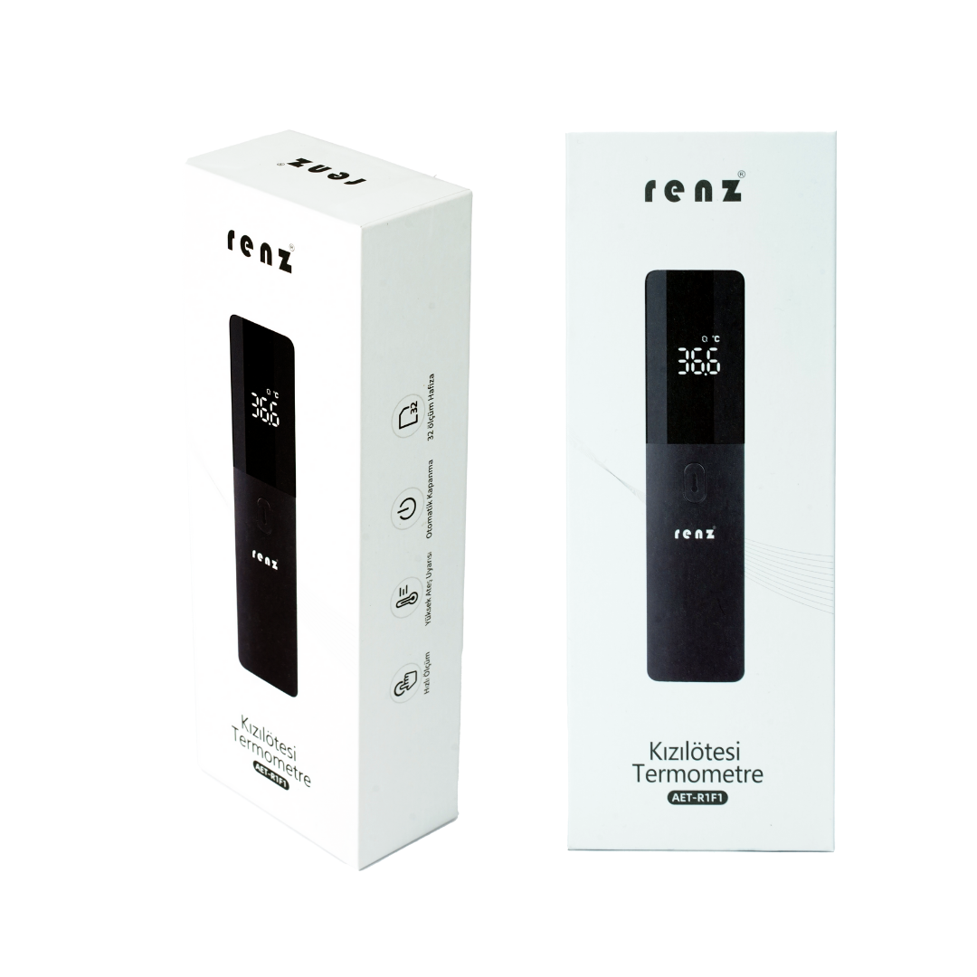 Renz AET-R1F1 Kızılötesi Termometre Ateş Ölçer; temassız, hızlı ve güvenilir ölçüm. Dijital ekran, otomatik kapanma ve şık siyah tasarım..