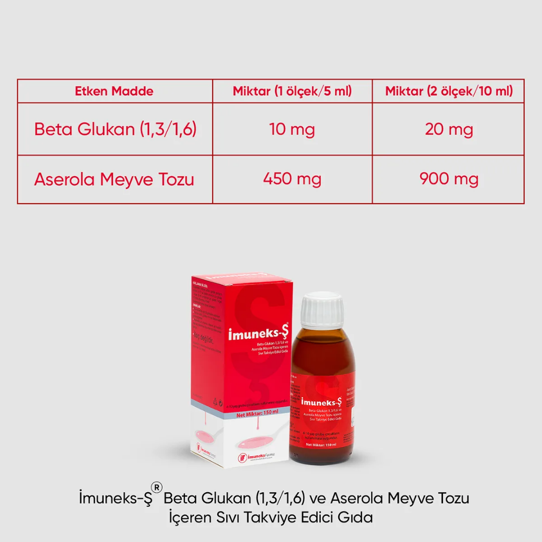 İmuneks S Şurup (150 ml) Beta Glukan ve Aserola ile Sıvı Bağışıklık Desteği